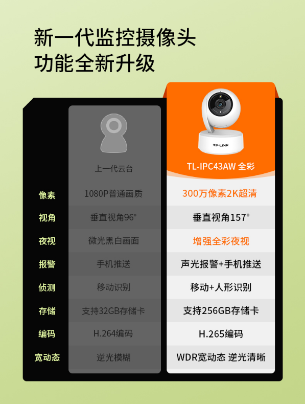 TP-LINK 2K超清全彩300万摄像头家用监控器360全景无线家庭室内tplink可对话网络手机远程门口高清 IPC43AW